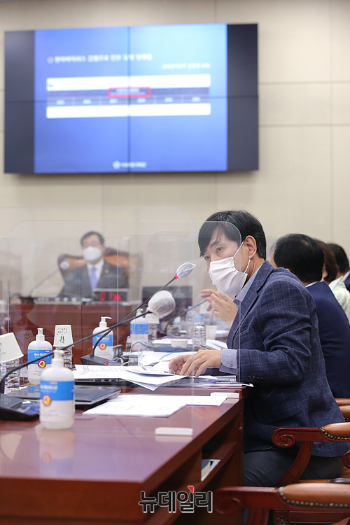하태경 미래통합당 의원이 1일 오전 국회에서 열린 국방위원회 전체회의에서 질의를 하고 있다. (사진=국회사무처)