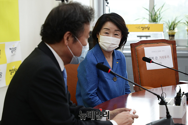 이낙연 더불어민주당 신임 당대표가 1일 오전 국회에서 심상정 정의당 대표를 예방하고 있다.
