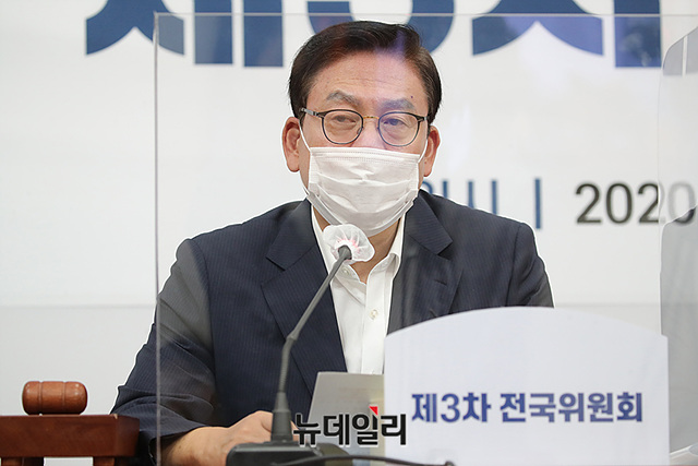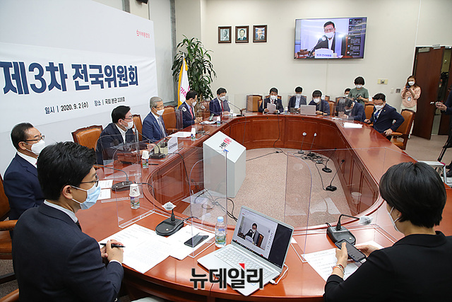 정우택 미래통합당 전국위원회 의장이 2일 오전 국회에서 열린 제3차 전국위원회에서 모두발언을 하고 있다.