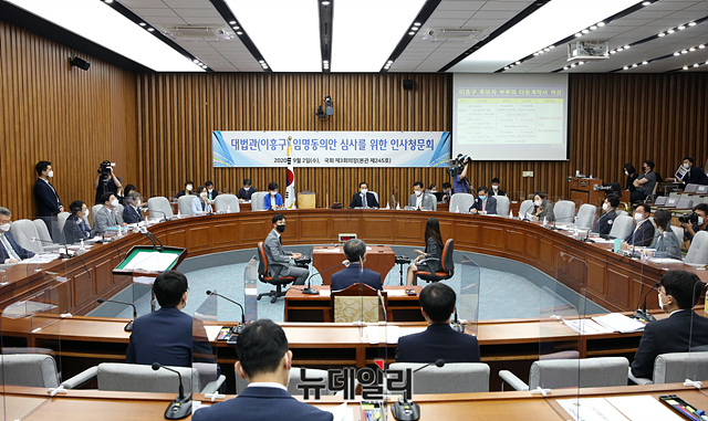 이흥구 대법관 후보자가 2일 오전 국회에서 열린 임명동의안 심사를 위한 인사청문회에서 선서를 하고 있다. (사진=국회사무처)