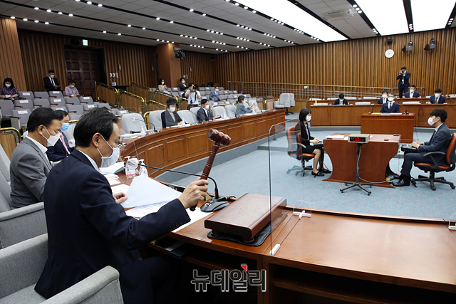 우상호 위원장이 2일 오전 국회에서 열린 이흥구 대법관 후보자 임명동의안 심사를 위한 인사청문회에서 의사봉을 두드리고 있다. (사진=국회사무처)