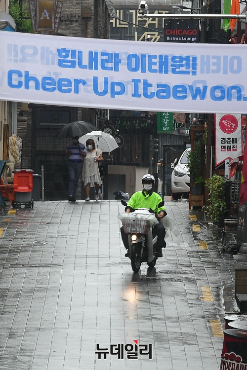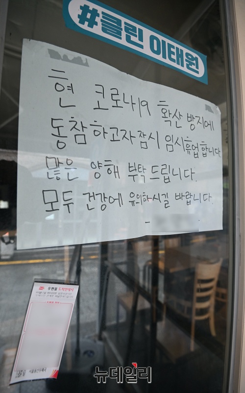 이태원 거리에는 '이태원을 기억해주세요' '클린 이태원' '힘내라 이태원' 등 문구가 적힌 현수막이 내걸렸다. 정부의 강화된 사회적 거리두기 정책으로 인해 임시휴점하는 가게를 어렵지 않게 발견할 수 있다.