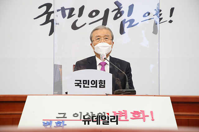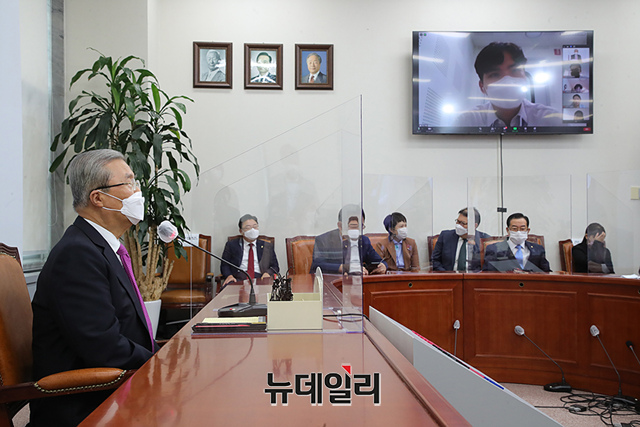 [포토] 온라인 기자간담회 갖는 김종인 국민의힘 비대위원장