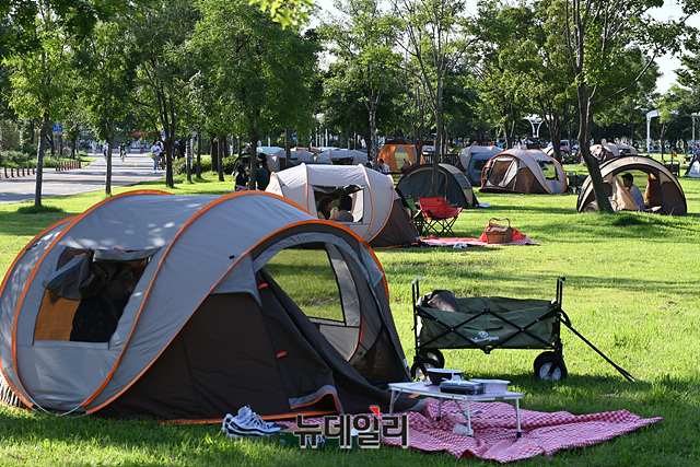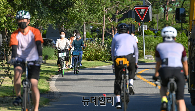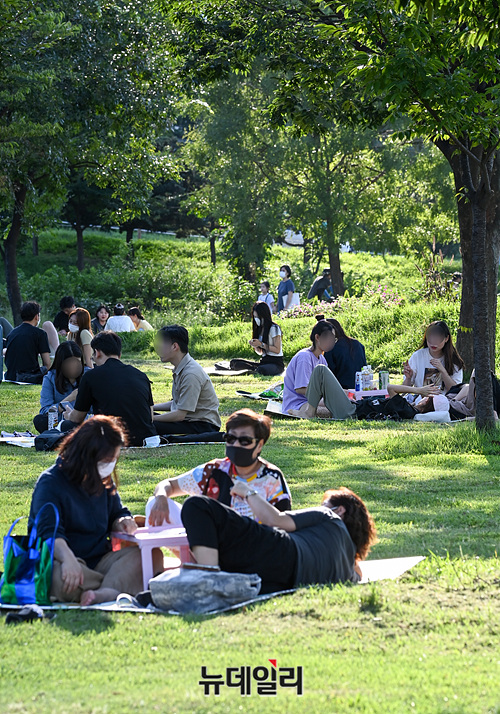 정부가 수도권에 적용된 사회적 거리두기 2.5단계를 1주일 더 연장하기로 공식 발표한 4일 오후 서울 여의도 한강공원이 나들이 나온 시민들로 붐비고 있다.박능후 보건복지부 장관은 이날 정부서울청사에서 열린 정례브리핑에서 "코로나19의 대규모 유행을 차단할 수 있을지 결정하는 중요한 시점의 한 가운데에 서 있다"며 "지금은 사회적 거리두기의 노력이 조금 더 필요한 시점"이라고 말했다.정부는 6일 종료를 앞둔 수도권 사회적 거리두기 2.5단계를 1주일 연장하기로 했다. 비수도권 지역은 현재 운영중인 2단계를 2주일 연장한다.수도권 지역은 강화된 방역조치로 프랜차이즈형 아이스크림점과 제과제빵점까지 확대 운영해 매장에서 취식을 할수 없게 된다.