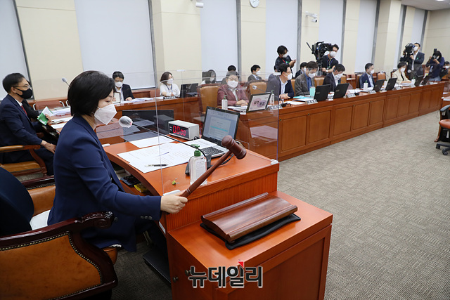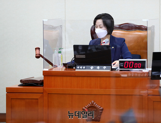송옥주 환경노동위원회 위원장이 7일 오전 국회에서 열린 환노위 전체회의에서 의사진행을 하고 있다. (사진=국회사무처)