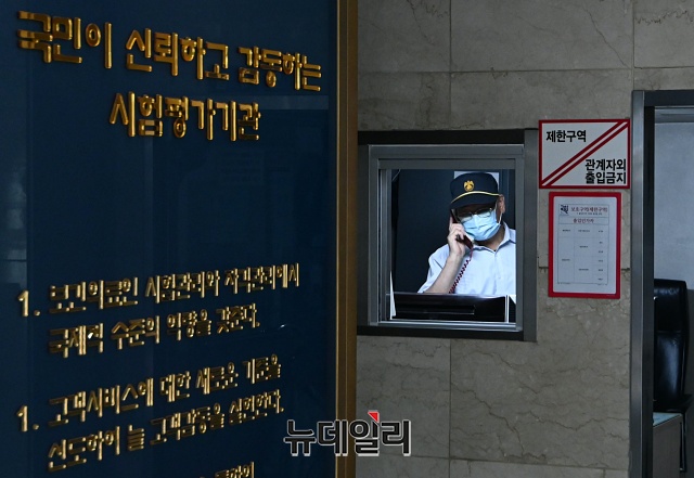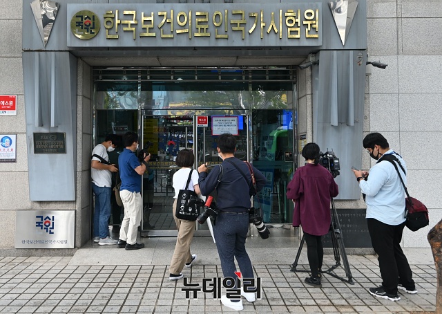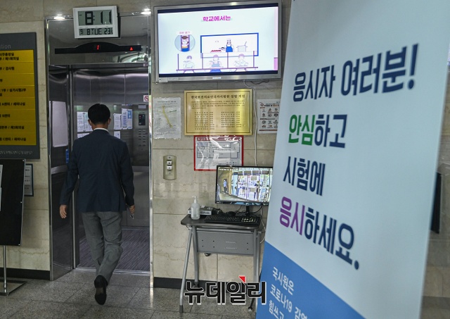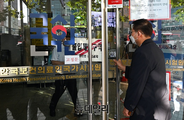 의사 국가고시 실기시험 일인 8일 오전 서울 광진구 한국보건의료인국가시험원에서 관계자가 들어서고 있다.
