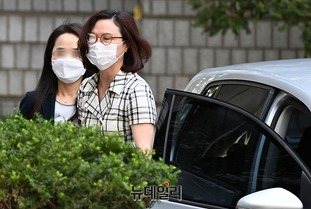 '사모펀드 및 자녀 입시비리' 등 혐의를 받는 정경심 동양대 교수가 8일 오전 서울 서초구 서울중앙지법에서 열린 자본시장과 금융투자업에 관한 법률위반 등 관련 속행공판에 출석하고 있다. 이날 공판에는 동양대 관계자들이 증인으로 출석할 예정이다.