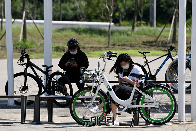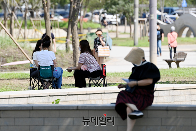 사회적 거리두기 2.5단계가 연장 시행중인 8일 오후 서울 서초구 반포한강공원에서 시민들이 나들이를 즐기고 있다. 서울시는 이날 오후 2시부터 서울 여의도·뚝섬·반포 등 주요 한강공원 내 밀집지역에 시민 출입이 통제된다고 밝혔다.출입 통제로 인해 11개 한강공원 내 43개 주차장도 오후 9시부터 다음날 오전 2시까지 진입할 수 없게 된다.이번 조치는 '코로나19(중국 우한 폐렴)' 재확산을 저지하기 위한 서울시 '천만시민 멈춤 주간'이 종료될 때까지 이어진다.