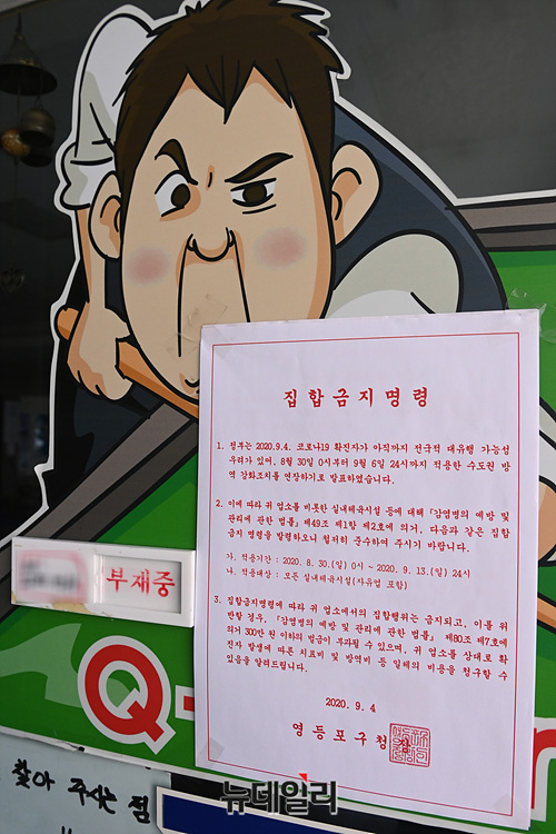 '코로나19(중국 우한 폐렴)' 재확산으로 인해 수도권에서 사회적 거리두기 2.5단계가 시행중인 11일 오전 서울 영등포구의 한 당구장이 문을 닫고 있다.