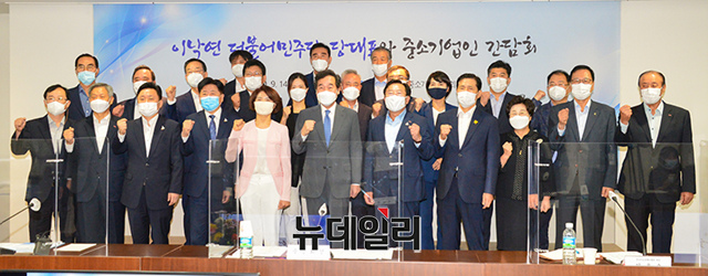 이낙연 더불어민주당 대표가 14일 오전 서울 여의도 중소기업중앙회에서 열린 중소기업인 간담회에서 중소기업인들과 기념사진을 촬영하고 있다. (사진=더불어민주당)