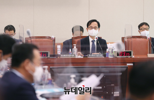 [포토] 국회 출석한 강성천 중소벤처기업부 차관