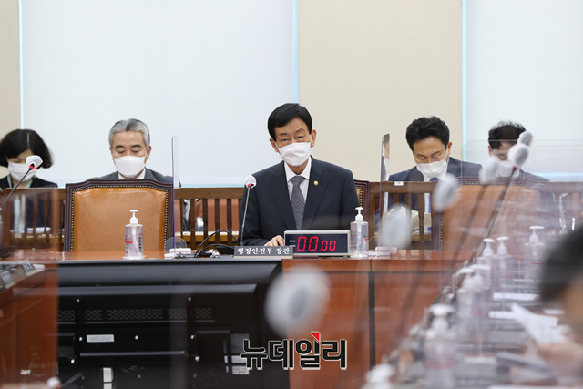 진영 행정안전부 장관이 15일 오후 국회에서 열린 행정안전위원회 전체회의에서 의원들의 질문에 답하고 있다. (사진=국회사무처)