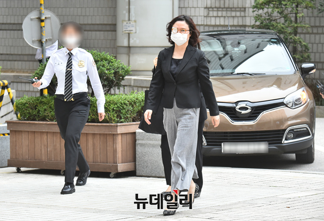'사모펀드 및 자녀 입시비리' 등 혐의를 받는 정경심 동양대 교수가 17일 오전 서울 서초구 서울중앙지법에서 열린 자본시장과 금융투자업에 관한 법률위반 등 관련 속행공판에 출석하기 위해 차량에서 내리고 있다.