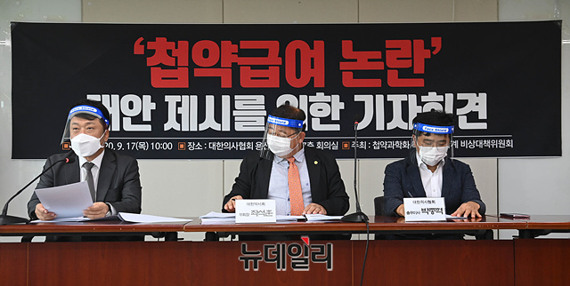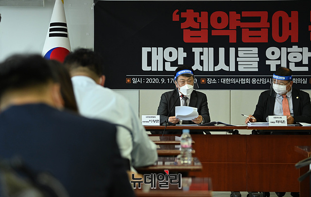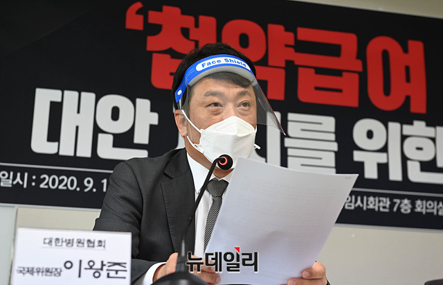 이왕준 대한병원협회 국제위원장이 17일 오전 용산구 대한의사협회에서 열린 '첩약급여 논란 대안 제시를 위한 기자회견'에서 회견문을 발표하고 있다.이 위원장은 "10월로 예정된 첩약급여 시범사업 방안이 공개되지 않는 현실에서 국민 안전이 최우선되어야 한다는 대명제하에 시범사업을 개선해야 한다"며 △첩약 안전성·경제성·효과성 평가 기준 마련 및 효과성 평가 △한의임상표준진료지침(CPG) 보완 △탕전기관과 조제기관 시설·공정 표준화 △한약재 이력관리 바코드시스템 도입 등을 요구했다.이날 기자회견에는 이 위원장, 좌석훈 대한약사회 부회장, 박종혁 대한의사협회 총무이사, 김대하 대한의사협회 홍보이사 겸 대변인 등이 참석했다.