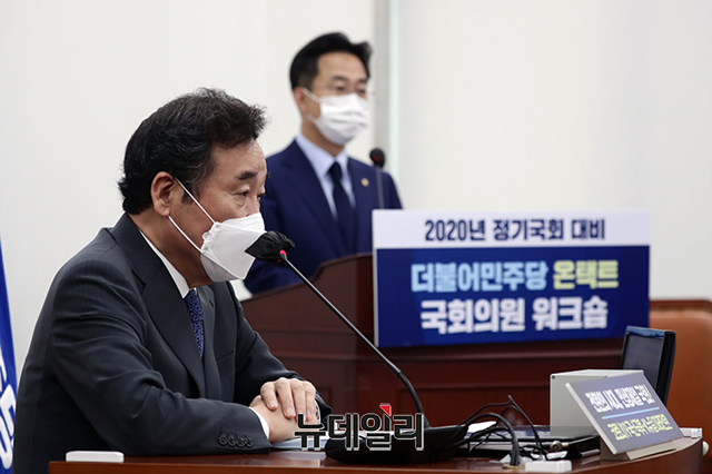 이낙연 더불어민주당 당대표가 17일 오전 국회에서 열린 2020년 정기국회 대비 더불어민주당 온택트 국회의원 워크숍에 참석해 모두발언을 하고 있다. (사진=더불어민주당)