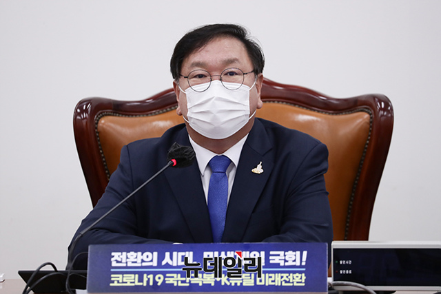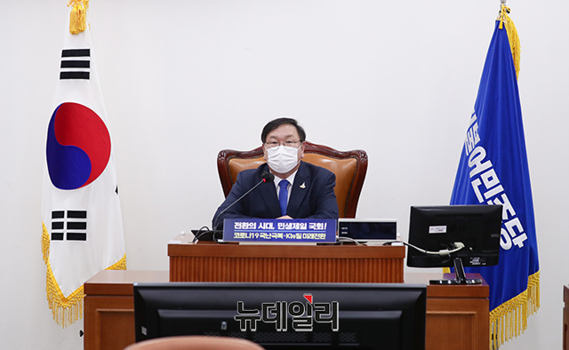 김태년 더불어민주당 원내대표가 17일 오전 국회에서 열린 2020년 정기국회 대비 더불어민주당 온택트 국회의원 워크숍에 참석해 모두발언을 하고 있다. (사진=더불어민주당)