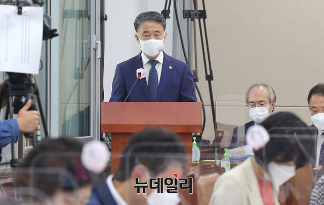 박능후 보건복지부 장관이 17일 국회에서 열린 보건복지위원회 전체회의에 출석해 업무보고를 하고 있다. (사진=국회사무처)