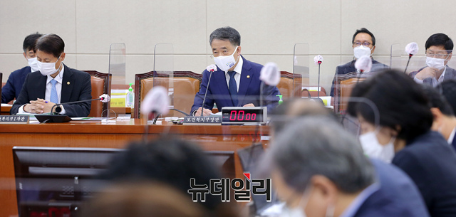 박능후 보건복지부 장관이 17일 국회에서 열린 보건복지위원회 전체회의에 출석해 의원들의 질문에 답하고 있다. (사진=국회사무처)