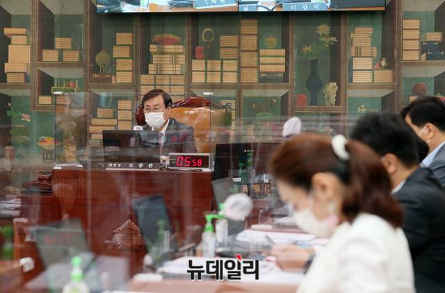 도종환 국회 문화체육관광위원회 위원장이 18일 오전 국회에서 열린 문체위 전체회의에서 의사진행을 하고 있다. (사진=국회사무처)