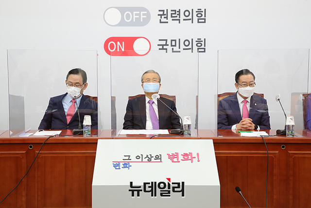 김종인 국민의힘 비대위원장이 21일 오전 국회에서 열린 비상대책위원회의에 참석해 앉아 있다. (사진=국민의힘)