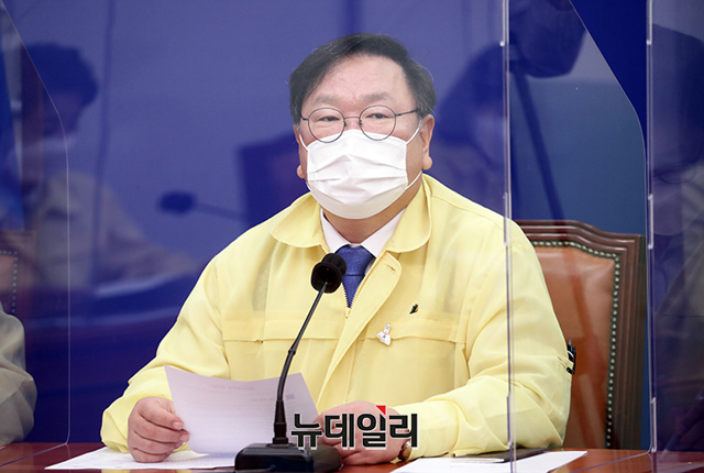 김태년 더불어민주당 원내대표가 21일 오전 국회에서 열린 최고위원회의에서 모두발언을 하고 있다. (사진=더불어민주당)