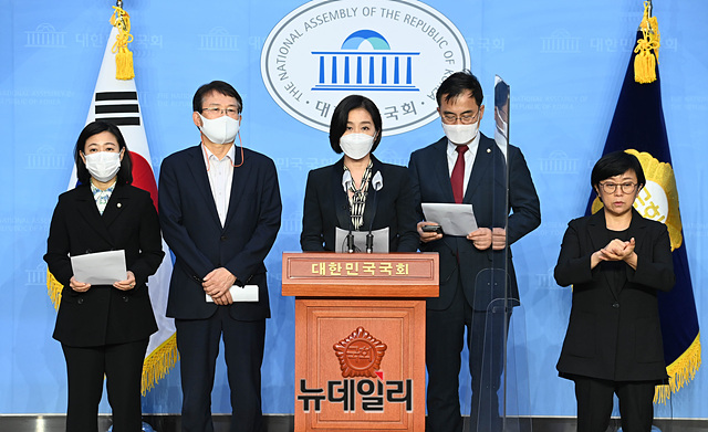 허은아 국민의힘 의원 등 포털공정대책 특별위원회가 21일 오후 국회 소통관 기자회견장에서 '네이버의 추미애 장관 검색 조작 의혹 해명 기자회견'을 갖고 있다.이들은 추미애 장관을 네이버에 검색했을 때 나오는 '탭 순서(카테고리 배열)'에 대해 "일일 평균 이용자수가 3천만명에 달라는 네이버의 AI 알고리즘이 기본 중의 기본도 인식 안된단 말인가. 이는 네이버의 근본적인 역량 부족을 자임하는 말이다"며 비판했다.이어 "네이버는 추미애 장관 관련 기사 및 댓글에 대한 이용자 노출 수와 기사배열 기준의 알고리즘과 요며칠간 실제로 작동된 알고리즘 사이에 어떤 차이가 있는지 설명해야 한다"고 밝혔다.