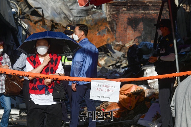 [포토] 추석 앞두고 청과물시장 화재..망연자실 한 상인들