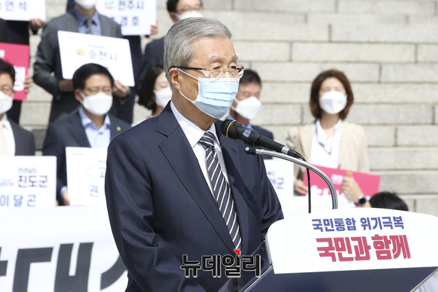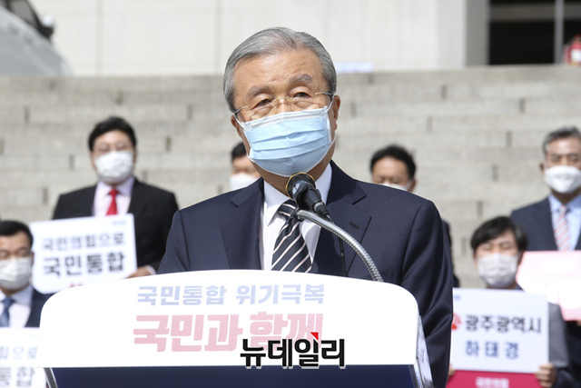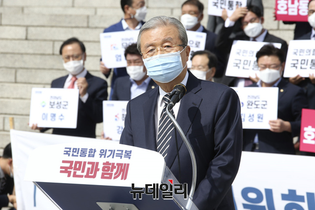 김종인 국민의힘 비상대책위원장이 23일 오전 국회 본청앞에서 열린 호남동행국회의원 발대식에서 발언을 하고 있다. (사진=국민의힘)