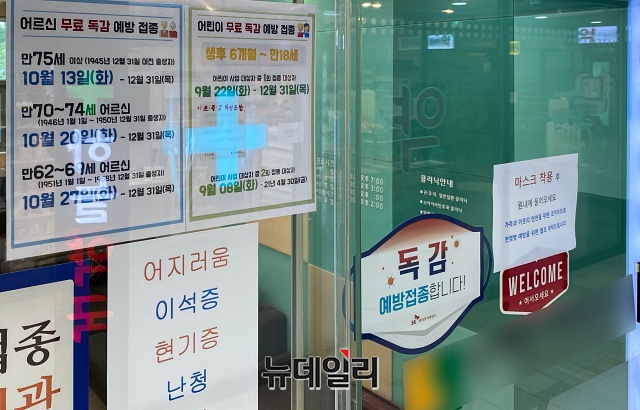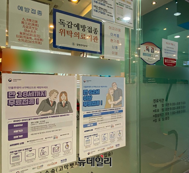 정부가 독감백신의 유통상 문제로 무료접종을 중단한 23일 오전 서울시내 한 병원에 독감 예방접종 안내문이 붙어있다.