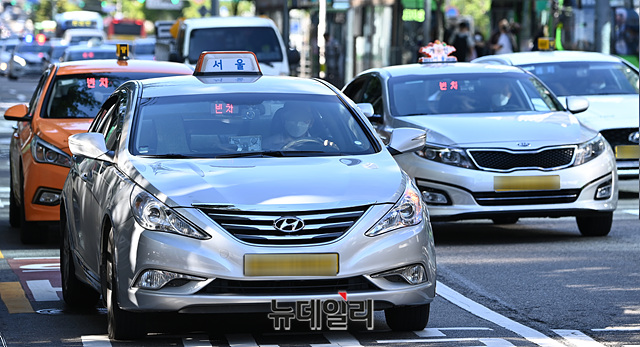 국내 '코로나19(중국 우한 폐렴)' 신규 확진자가 여전히 세자리 수를 기록하고 있는 24일 오전 서울 마포구 홍대역 인근에서 택시들이 손님을 기다리고 있다.이날 정부는 22일 국회 본회의에서 7조 8,000억 원 규모의 4차 추가경정예산(추경)안이 의결됨에 따라 각 지원금 대상자에게 2차 재난지원금 관련 안내 문자를 발송했다.개인택시와 달리 지원 대상에서 제외됐던 법인택시 운전자도 소득이 감소한 경우 100만 원의 재난지원금을 받을 수 있도록 했다.이날 0시기준 코로나19 신규 확진자는 125명으로 집계됐다.