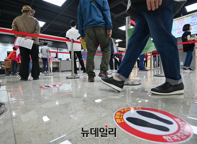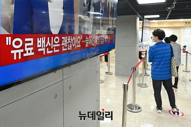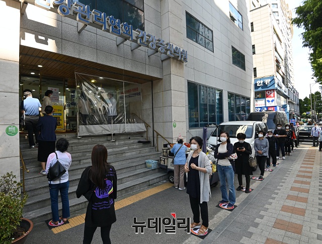 정부가 독감백신의 유통상 문제로 무료접종을 중단한 24일 오전 서울 강서구 한국건강관리협회 서울서부지부에서 시민들이 유료 독감 예방접종을 받기 위해 줄 서 있다.유료접종을 받으러 온 시민은 "무료접종은 중단되고, 유료접종도 백신이 떨어지면 못맞을까봐 맞으러 왔다"고 했다.관계자는 "백신 문제가 불거져서 그런지 평소보다 많은 사람이 왔다"며 "코로나 때문에 사회적거리두기 2단계 수칙을 지켜야 해서 1m 간격으로 줄을 서니 길어졌다"고 말했다.독감 무료접종은 22일부터 예정됐지만 백신 유통과정에서 상온노출 돼 중단된 상태다. 정부는 앞으로 2주간 문제가 된 백신의 효과, 부작용 등 품질 검사를 진행해 피해 규모를 확인 후 접종 사업을 재개한다고 밝혔다.