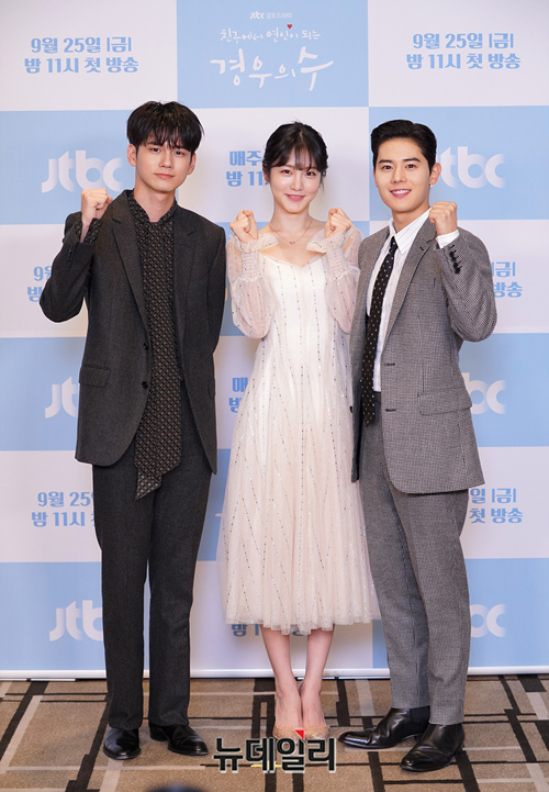 배우 옹성우, 신예은, 김동준이 24일 오후 온라인으로 열린 JTBC 새 금토 드라마 '경우의 수(연출 최성범, 극본 조승희)' 제작발표회에서 포토타임을 갖고 있다.