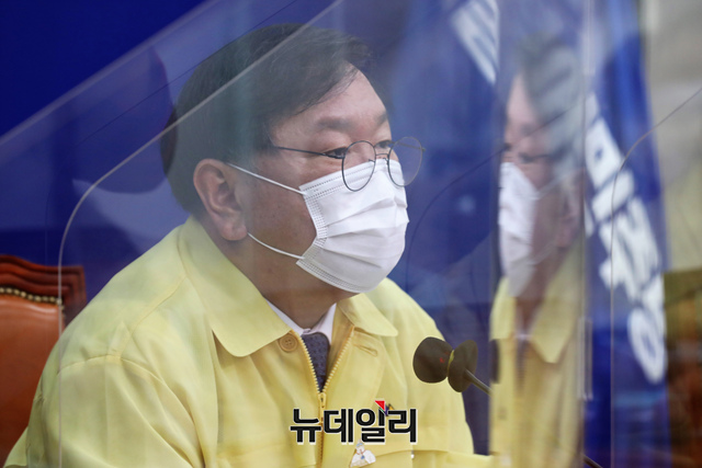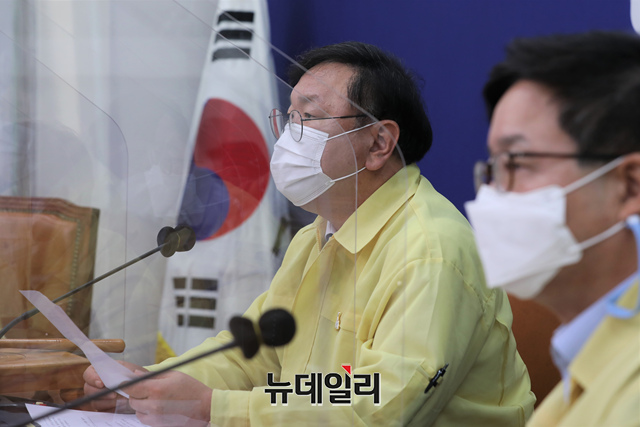 김태년 더불어민주당 원내대표가 25일 오전 국회에서 열린 더불어민주당 최고위원회의에서 모두발언을 하고 있다. (사진=공동취재단)