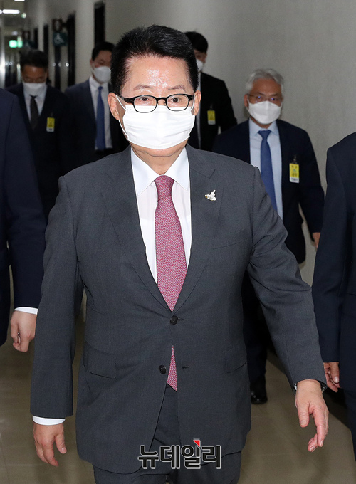 박지원 국가정보원장이 25일 오후 국회에서 연평도 해상에서 북한의 총격으로 사망한 해양수산부 공무원 사건관련 현안보고를 위해 열린 정보위 전체회의에 참석하고 있다. (사진=공동취재단)