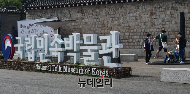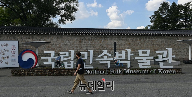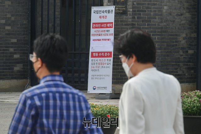 전국 국립문화시설이 재개관한 28일 오후 서울 종로구 국립민속박물관에 재개관 및 온라인 사전예약 안내문이 놓여있다.