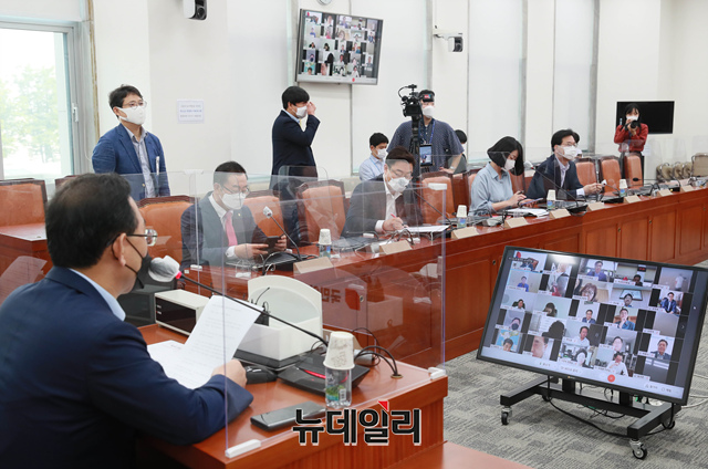 주호영 국민의힘 원내대표가 29일 오전 국회에서 열린 화상 의원총회에서 회의를 주재하고 있다. (사진=공동취재단)