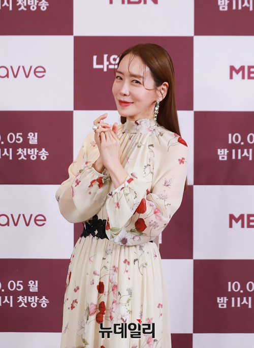 배우 김정은이 5일 오후 온라인으로 열린 MBN 새 월화극 '나의 위험한 아내(극본 황다은, 연출 이형민)' 제작발표회에서 포토타임을 갖고 있다.