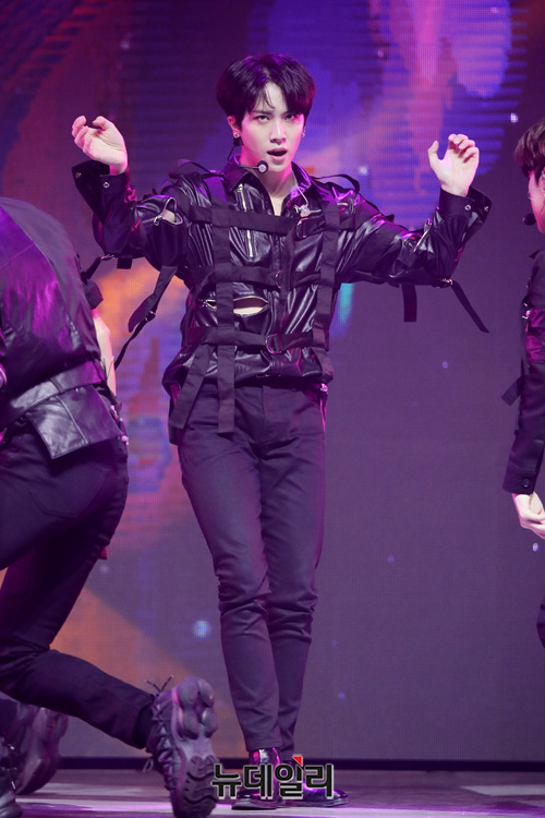 6인조 신인 그룹 '위아이(WEi)' 멤버 김동한이 5일 오후 온라인으로 진행된 첫번째 미니앨범 '아이덴티티: 퍼스트 사이트' 쇼케이스에서 포토타임을 갖고 있다.