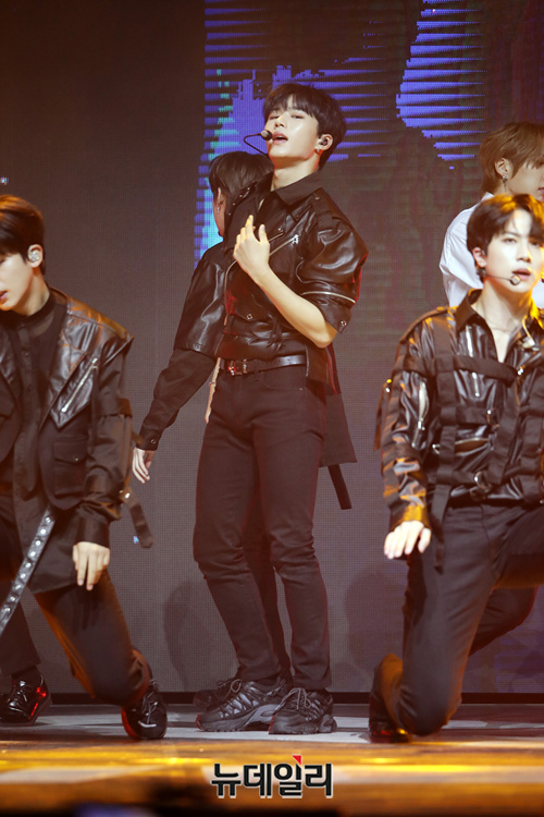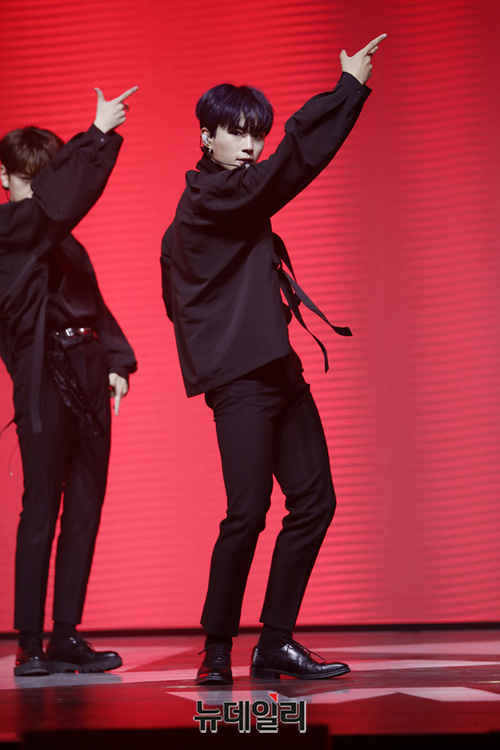 6인조 신인 그룹 '위아이(WEi)' 멤버 김준서가 5일 오후 온라인으로 진행된 첫번째 미니앨범 '아이덴티티: 퍼스트 사이트' 쇼케이스에서 포토타임을 갖고 있다.