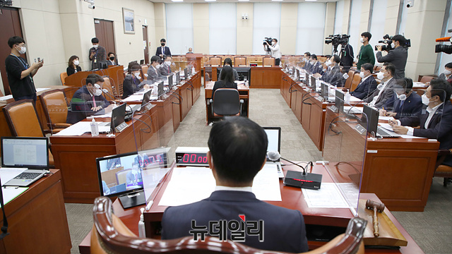 국회 국방위원회 전체회의가 열린 6일 오전 국회에서 민홍철 위원장의 주재로 회의가 진행되고 있다. (사진=공동취재단)