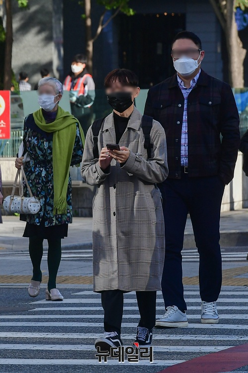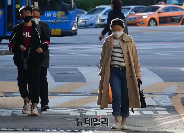[포토] 쌀쌀한 아침 공기, 겉옷 챙겨입은 시민들