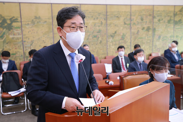 박양우 문화체육관광부 장관이 7일 오전 국회에서 열린 문화체육관광위원회 국정감사에서 업무보고를 하고 있다. (사진=공동취재단)