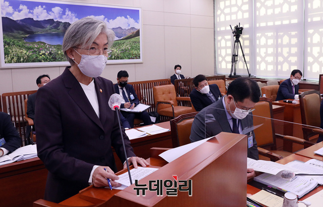 강경화 외교부 장관이 7일 오전 국회 외교통일위원회에서 열린 외교부에 대한 국정감사에 출석해 업무보고를 하고 있다. (사진=공동취재단)