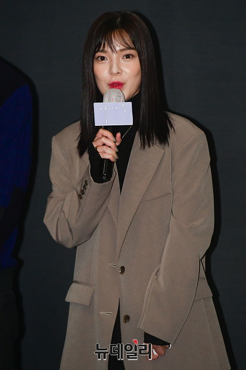 걸그룹 나인뮤지스 출신 배우 조소진이 7일 오후 서울 광진구 롯데시네마 건대입구에서 열린 영화 '나의 이름(감독 허동우)' 언론시사회에서 인사말을 하고 있다.