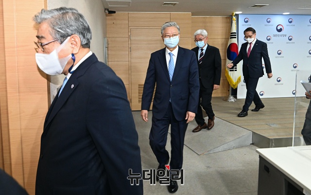 김 원장은 "코로나19로 매우 힘든 시기에 의대생들의 국가고시 문제로 국민들께 심려를 끼쳐드려 송구하다"며 "6년 이상 준비한 의대생들이 미래 의사로서 태어나 국민 곁을 지킬 수 있도록 국가고시 기회를 허락해 주시기를 간곡히 호소한다"고 말했다. (사진은 왼쪽부터 윤동섭 연세대의료원장, 김연수 서울대학병원장, 김영모 인하대의료원장, 김영훈 고려대학교 의료원장) -