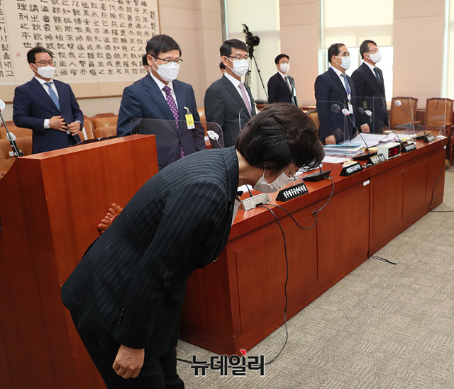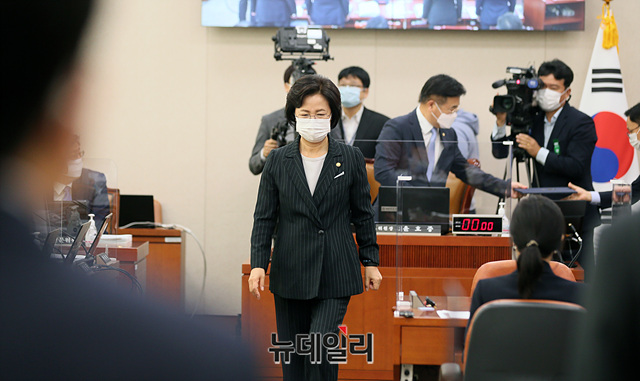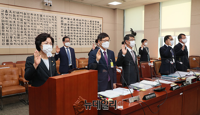 추미애 법무부 장관이 12일 오전 국회에서 열린 법제사법위원회 법무부 등에 대한 국정감사에 출석해 선서를 하고 있다. (사진=국회사무처)