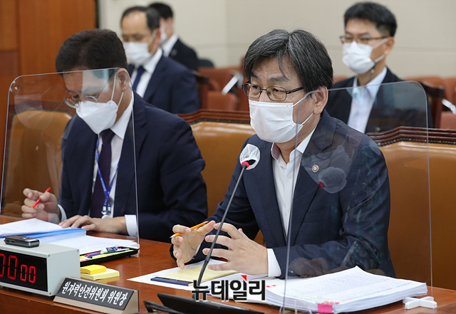 엄재식 원자력안전위원회 위원장이 12일 오전 국회에서 열린 과학기술정보방송통신위원회의 원자력안전위원회·한국수력원자력 등 원자력 관련 기관에 대한 국정감사에 출석해 의원들의 질의에 답하고 있다. (사진=공동취재단)