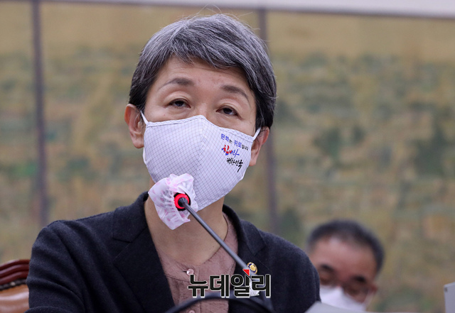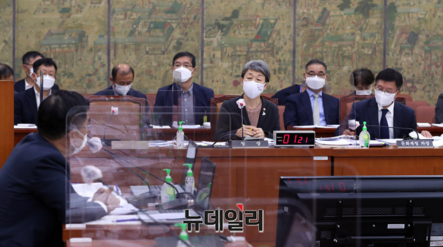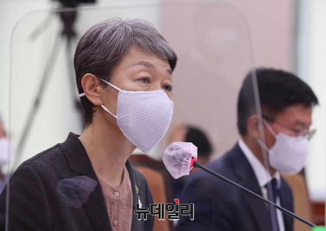 정재숙 문화재청장이 12일 오전 국회에서 열린 문화체육관광위원회의 문화재청·한국전통문화대·문화재연구소 등에 대한 국정감사에 출석해 의원 질문에 답하고 있다. (사진=공동취재단)