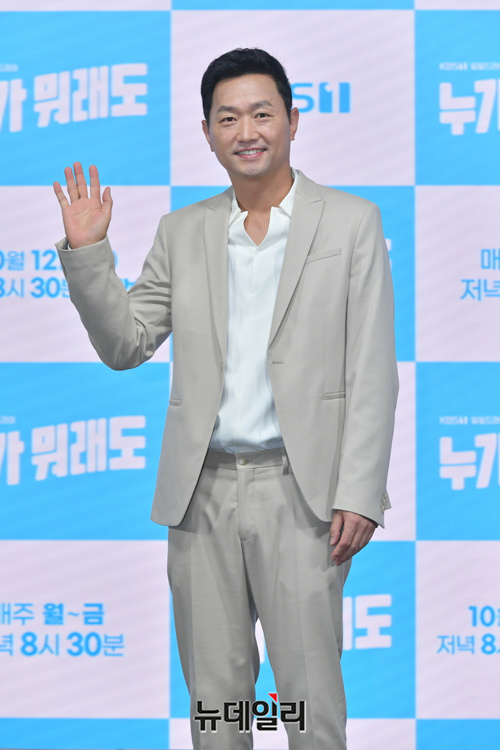 배우 김유석이 12일 오후 온라인으로 진행된 KBS 1TV 새 일일 드라마 '누가 뭐래도' 제작발표회에서 포토타임을 갖고 있다.