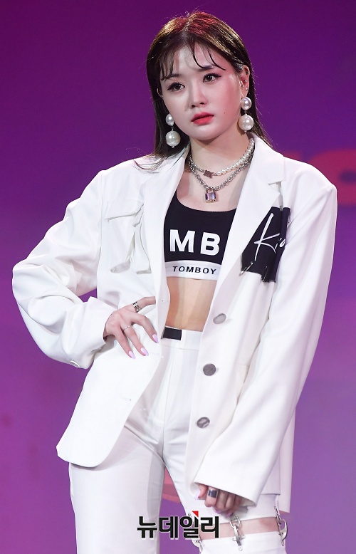 가수 키아라(KIARA)가 13일 오전 서울 강서구 서울호서예술실용전문학교에서 열린 두번째 싱글 'TOMBOY(톰보이)' 쇼케이스에서 포토타임을 갖고 있다.
